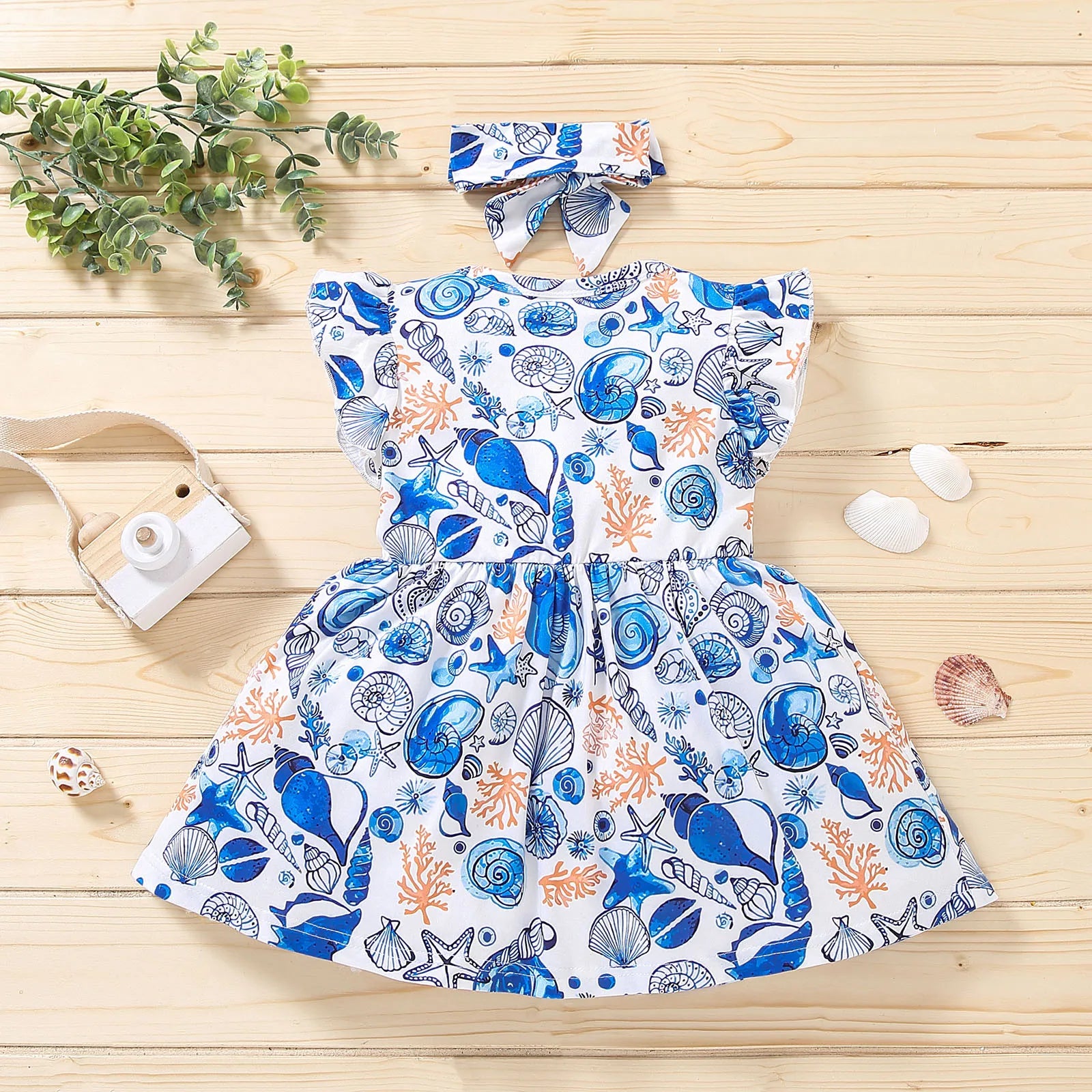 2025 Baby Girl Dresses 18 Month Girls Toddler Beach Sea Printed Flutter Sleeves Dress Infant Girls Preschool Sweet Clothes