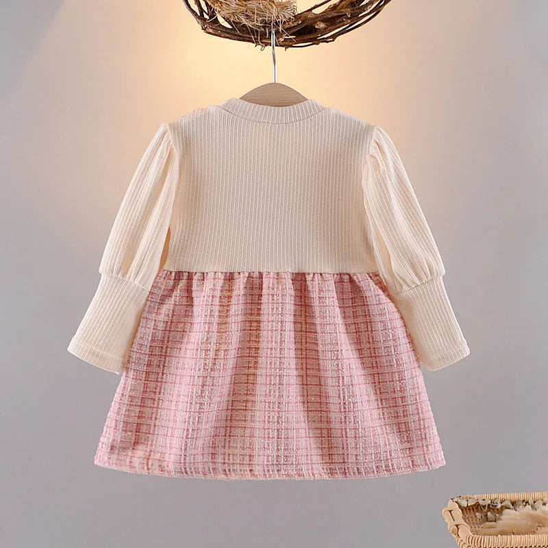 Baby Dresses For Girls Cotton Fashion Long Sleeve Patchwork Fake Two-Piece Outfit Clothes Infant Toddler Girl Long Sleeve Dress