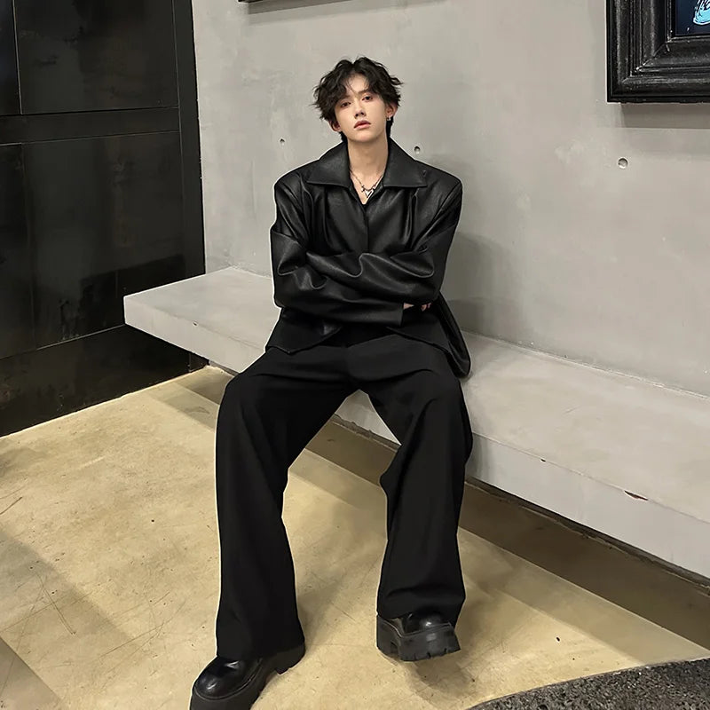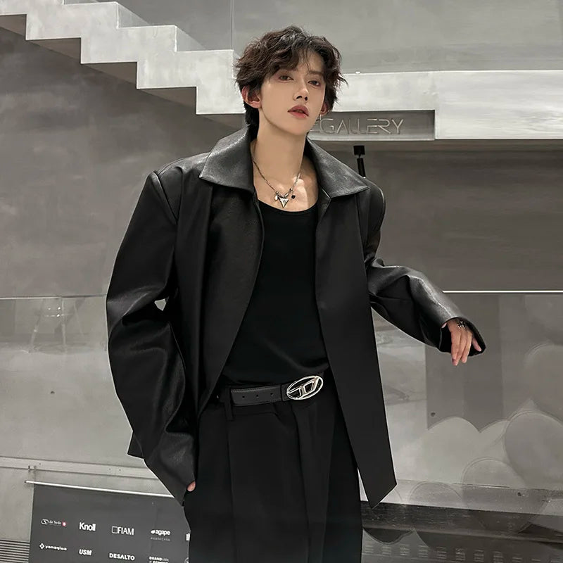 Handsome Fashion No Buttons PU Leather Jacket Men's Women's Motorcycle Faux Leather Jacket