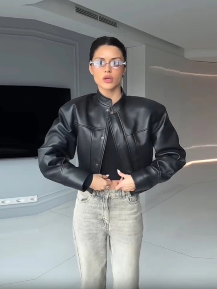 Slim Fit Faux Leather Jackets Women Classic Moto Biker PU Fitted Zipper Jacket