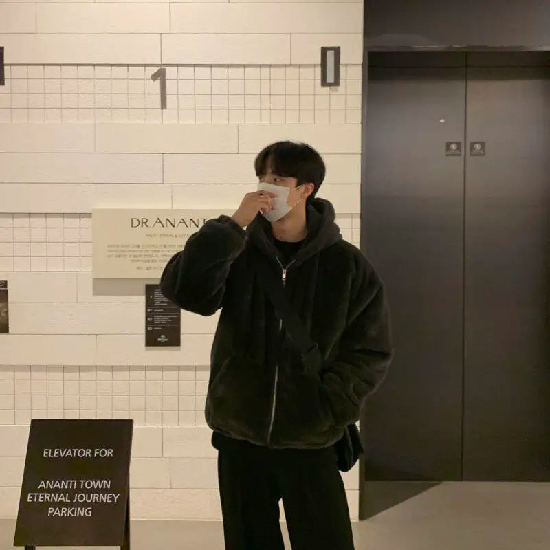 Winter faux lamb wool jacket men's padded thickened cotton clothing