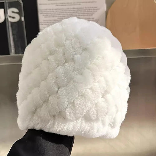 Women Winter Warm Real Rex Rabbit Fur Hat Snow Cap Winter Hats for Women Girls Real Fur Knit Skullies Beanies Natural Fluffy Hat